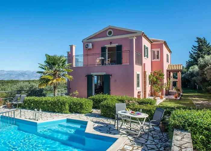 Deze 4-slaapkamer Villa Lenio Perithia Loutses ligt op 25 minuten wandelafstand van Apraos Beach en biedt een terras met uitzicht op de berg.